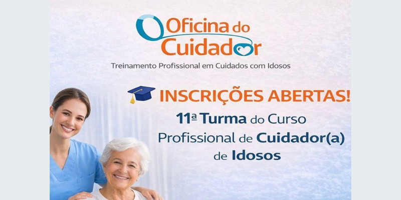 Estão abertas as inscrições para o Curso Profissionalizante de Cuidador(a) de Idosos – Oficina do Cuidador, reconhecido como o mais completo da região. A formação é voltada a pessoas que desejam ingressar em uma das profissões que mais cresce no Brasil, marcada pela alta demanda no mercado de trabalho e pela possibilidade real de ampliação da renda financeira.