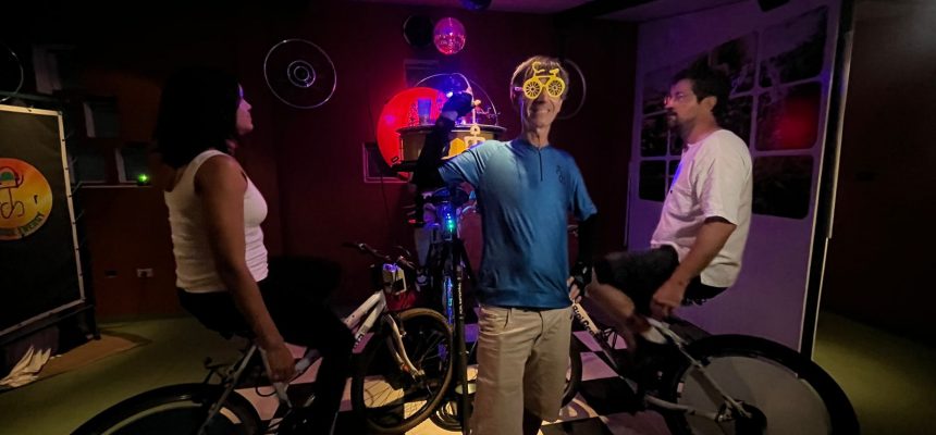 Inovação usa bicicletas para alimentar som, luz e cenografia.