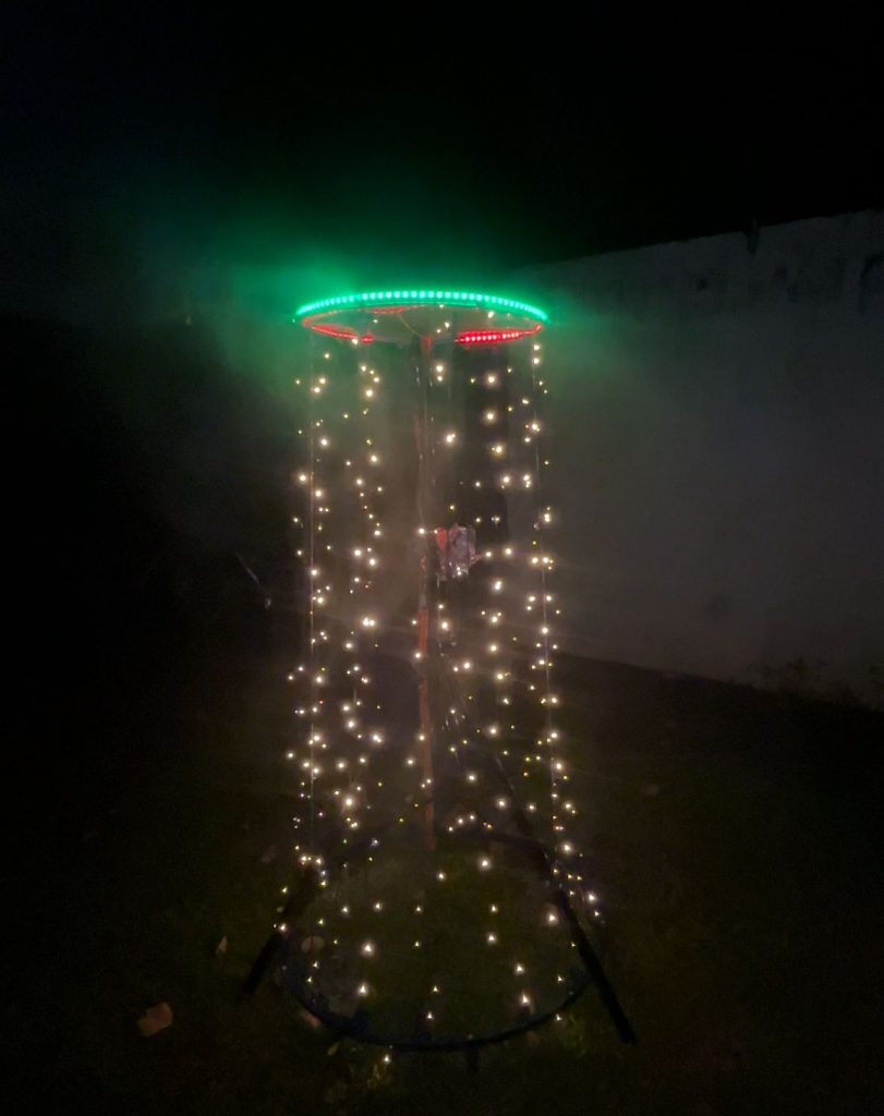 Às 20h30, o som foi encerrado para a inauguração da Árvore de Natal do Pedal, iluminada por 600 lâmpadas LED, também alimentadas por energia gerada nas bicicletas. A estrutura emitia uma névoa refrescante, oferecendo um momento de descanso após a intensa programação.
